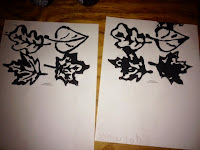 We celebrated the 1st day of Fall with a new art project.  This was probably one of our favorite activities so far.  We used black glue to outline a printout of leaves.  You may be able to buy black glue somewhere but we just made ours.  Take a bottle of school glue that is about half empty, add black paint until it is about three quarters of the way full then shake.  Once you finish your outlines they will need to dry for at least three hours (we left ours overnight).